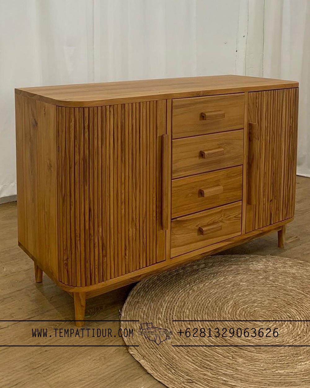 Bufet jati 2 pintu 4 laci retro modern minimalis TT-054