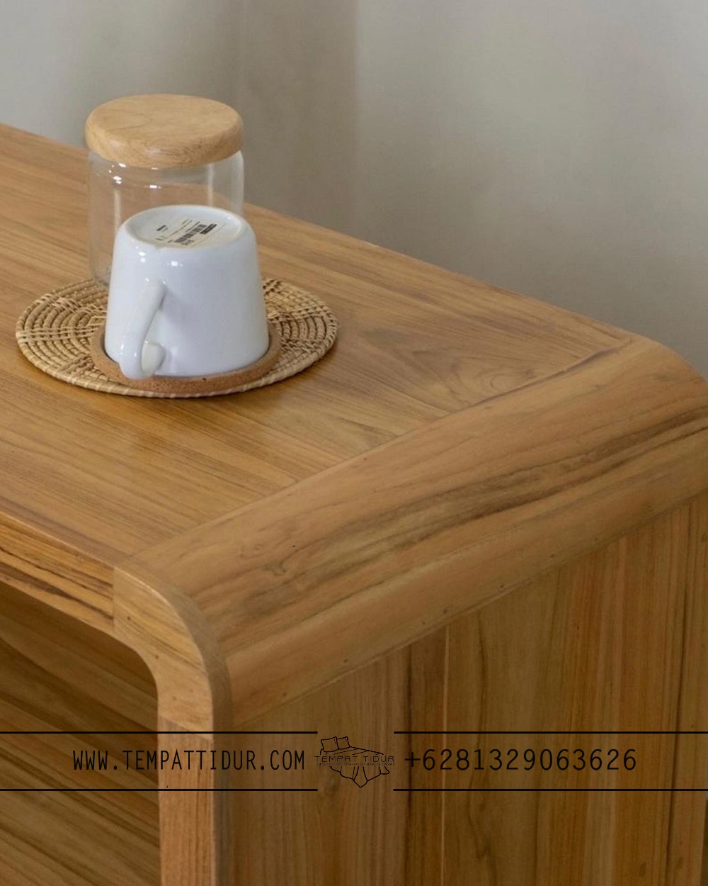 Desain keseluruhannya memang modern minimalis yang bersih dan timeless, sehingga bufet ini mudah sekali dipadukan dengan berbagai gaya interior yang Anda miliki, mulai dari Scandinavian yang ringan, Industrial yang tegas, hingga konsep kontemporer yang chic. Tone kayu jatinya yang natural dan hangat menciptakan atmosfer yang sangat casual dan friendly, cocok untuk segala suasana, baik itu santai bareng keluarga di akhir pekan maupun saat menjamu tamu. Ini bukan sekedar furnitur, tapi bagian dari cerita rumah Anda yang membuat ruangan terasa lebih lengkap, terorganisir, dan tentu saja, jauh lebih indah dipandang.