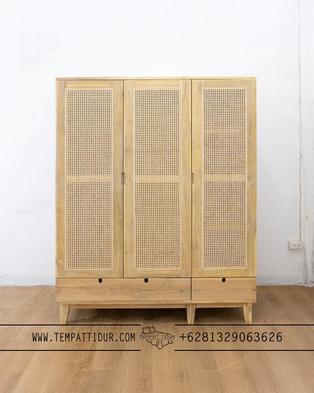 Lemari pakaian 3 pintu minimalis jati rotan TT-029