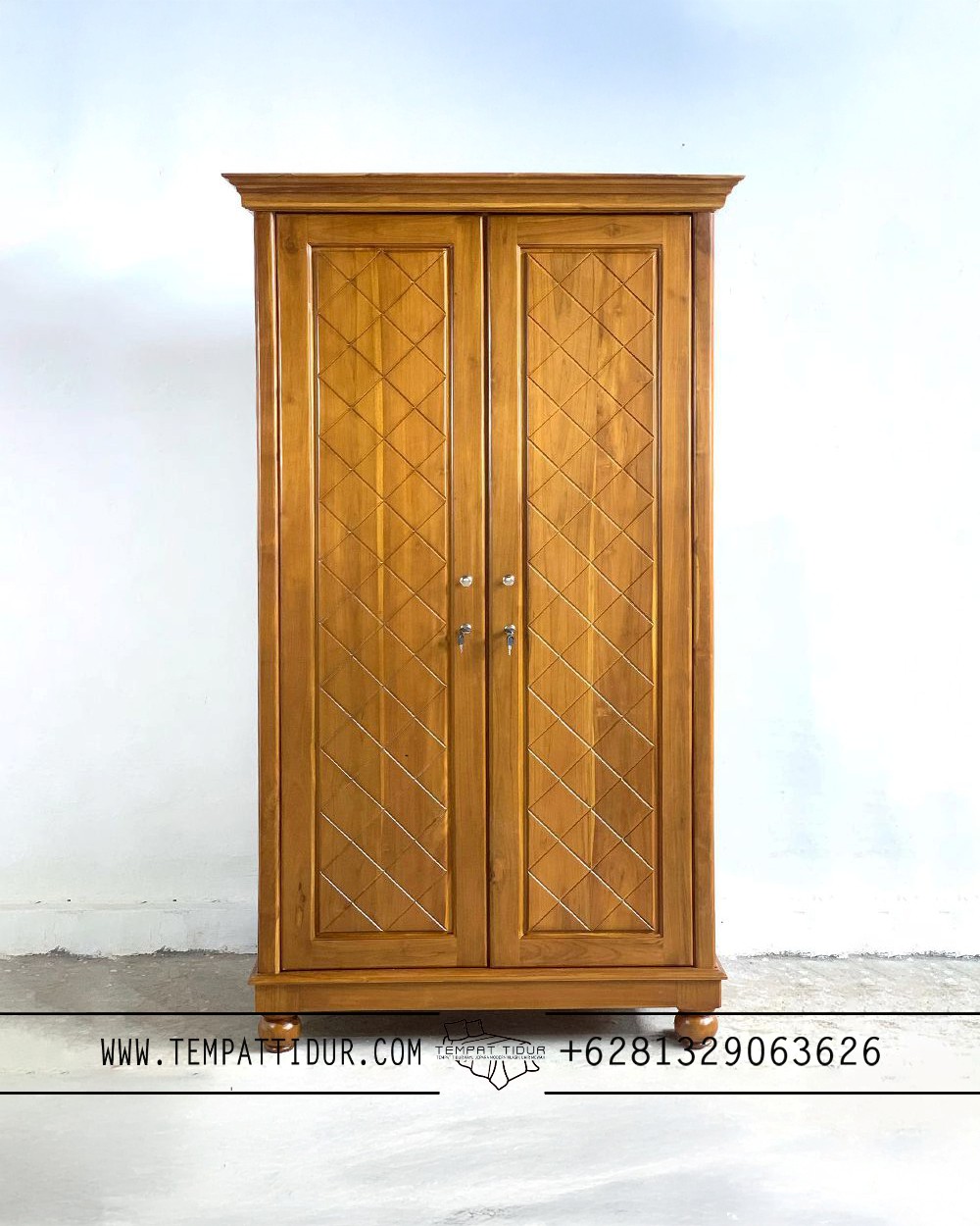 Lemari pakaian jati 2 pintu klasik kontemporer TT-092
