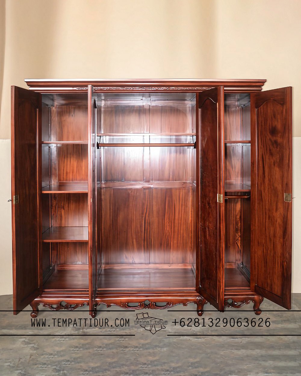 Cara Pemesanan Lemari pakaian klasik 4 pintu kayu jati jepara TT-110