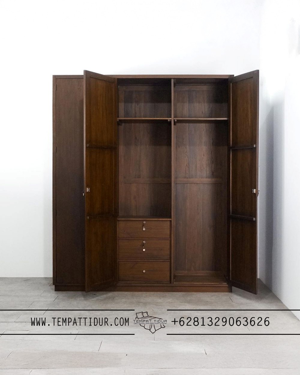 Lemari pakain kayu jati 3 pintu modern retro TT-105