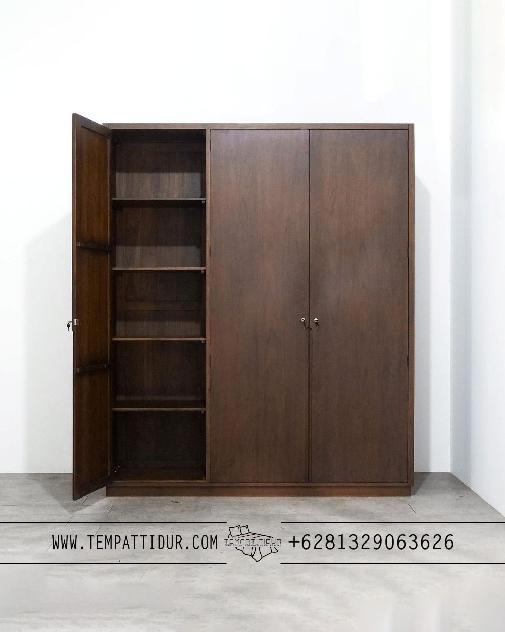 • Lemari pakain kayu jati minimalis 3 pintu modern retro TT-105