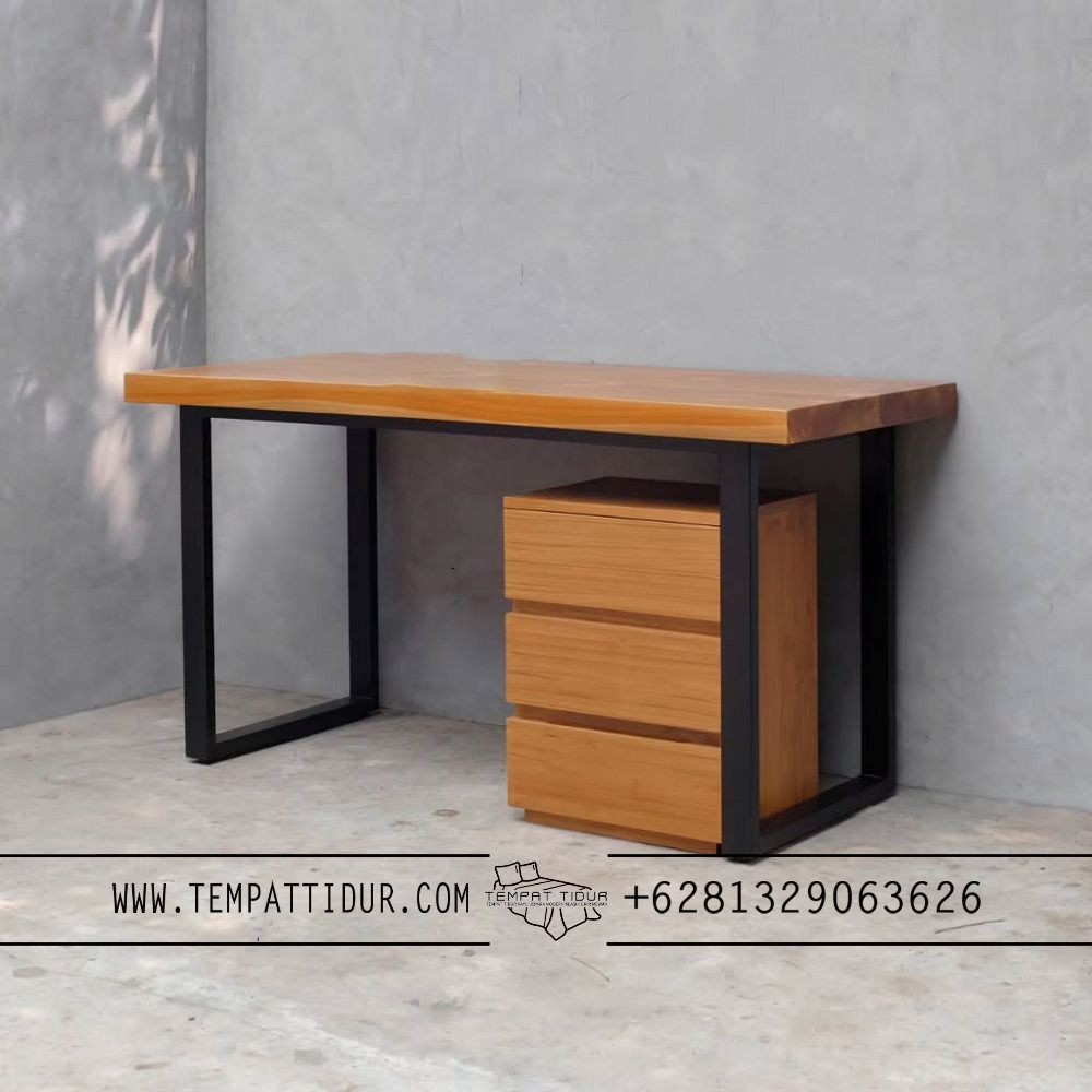 Meja kerja jati minimalis industrial style 3 laci TT-097