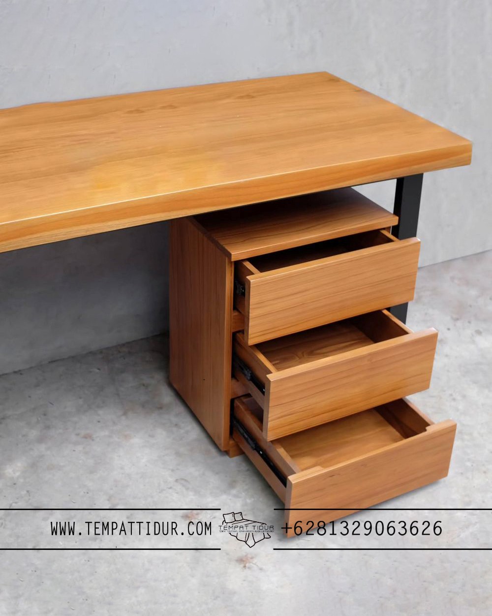 Untuk info lebih lanjut Dan tatacara pemesanan produk Meja kerja jati minimalis industrial style 3 laci TT-097 bisa langsung menghubungi nomer kontak yang telah kami sediakan atau datang langsung ke alamat workshop kami di Ds. Petekeyan 12/03 Tahunan – Jepara (59423)