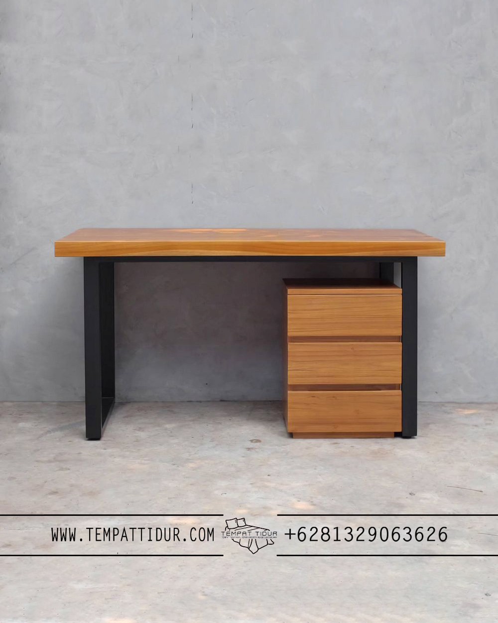 Cara Pemesanan Meja kerja jati minimalis industrial style 3 laci TT-097