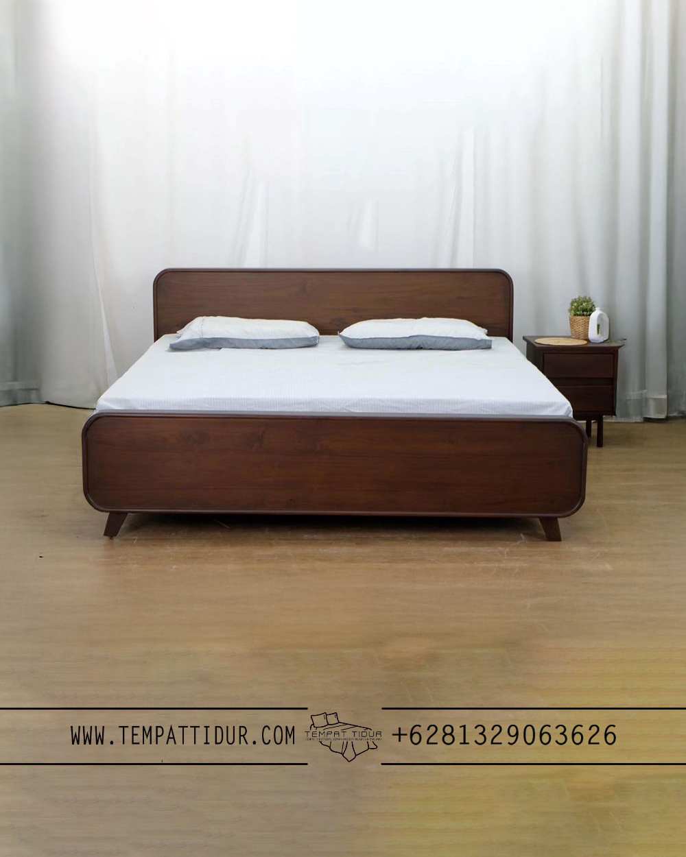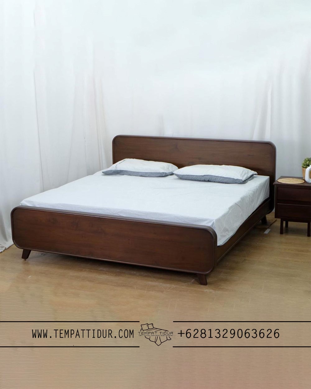 Hasilnya? Permukaan yang lembut di kulit, nggak gampang baret, dan tahan lama bahkan buat pemakaian tahunan. Kamu juga bakal suka karena warnanya netral kayu walnut—gampang dipaduin dengan interior apa pun, mulai dari lemari, meja rias, sampai warna cat dinding. Cocok buat yang suka suasana kamar cozy tapi tetap stylish. Plus, meskipun desainnya terkesan modern, sentuhan retro-nya bikin ranjang ini punya kesan hangat dan timeless. Nggak cuma enak dipandang, tapi juga kuat menopang kasur king size dengan stabil. Jadi, kalau mau upgrade kamar tidur biar lebih nyaman dan estetik tanpa ribet, tempat tidur minimalis ini bisa jadi solusi yang worth it. Durabilitasnya terjamin, kualitas kayu jatinya nggak diragukan lagi, dan yang pasti, hasil kerajinan tangan langsung dari kota mebel ternama Indonesia!